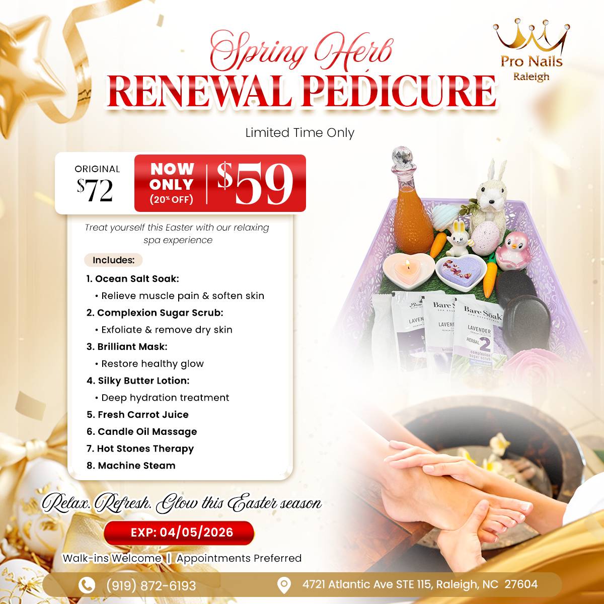 Welcome to Pro Nails, the go-to nail salon in Raleigh, NC, for expert manicures, pedicures, acrylic nails, gel nails, dipping powder, nail art, and waxing services. Located at 4721 Atlantic Ave STE 115, Raleigh, NC 27604, we are committed to providing a clean, relaxing, and high-quality experience for all our clients.